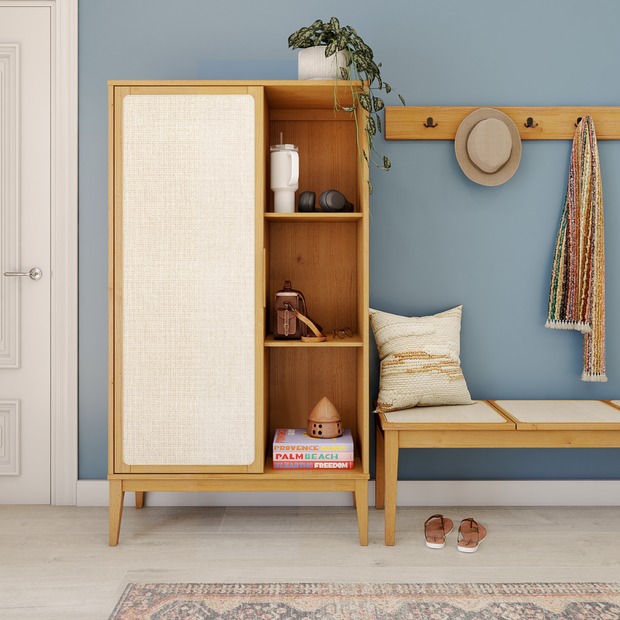 Estante Multiuso Livreiro em Madeira Maciça Telinha Rattan Viena Mel