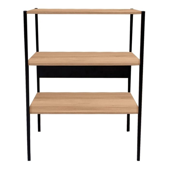 Estante Multiuso Reforçado Estilo Industrial 3 Prateleiras Aço Preto - MDF Carvalho