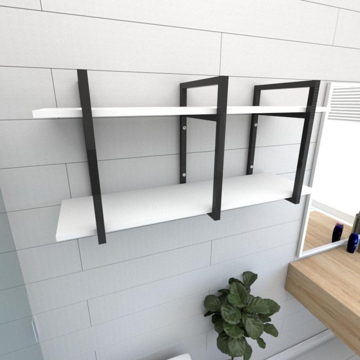Estante Nicho Industrial Banheiro Prateleira Branca Prateleira Industrial Prateleira De Parede Prateleira De Ferro E Madeira