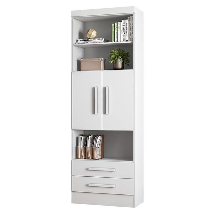 Estante para Livros 3700 2 Portas e 2 Gavetas Branco - Qmovi