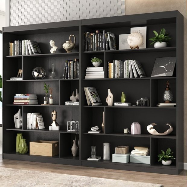 Estante para Livros 4 Prateleiras 181x240cm Home Office Yescasa Preto Ônix TX