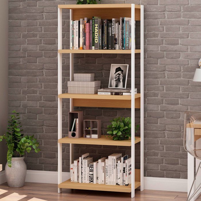 Estante para Livros 4 Prateleiras Freijó Branco Fosco - Genialflex