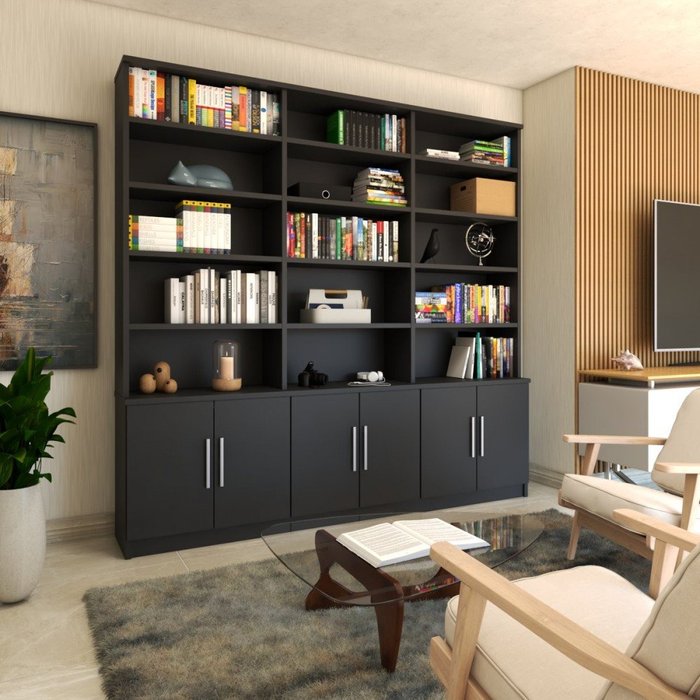 Estante para Livros Biblioteca 6 Portas 15 Prateleiras Removíveis Preto - Panorama Móveis