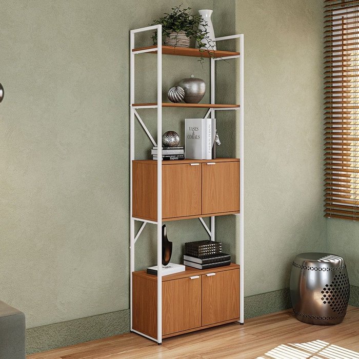 Estante para Livros Dijon 4 Portas Canela/branco Fosco - Kappesberg