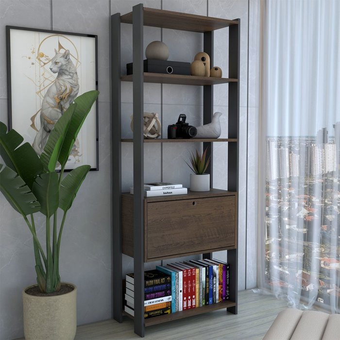 Estante para Livros Industrial 1 Porta 3 Prateleiras Pinho/preto - Panorama Móveis