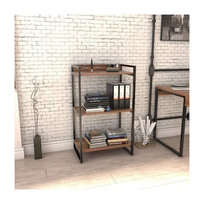 Estante para Livros Industrial 104cmx60cm 3 Prateleiras Kuadra Nogal