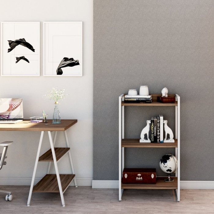 Estante para Livros Industrial 104cmx60cm 3 Prateleiras Kuadra Nogal/Branco