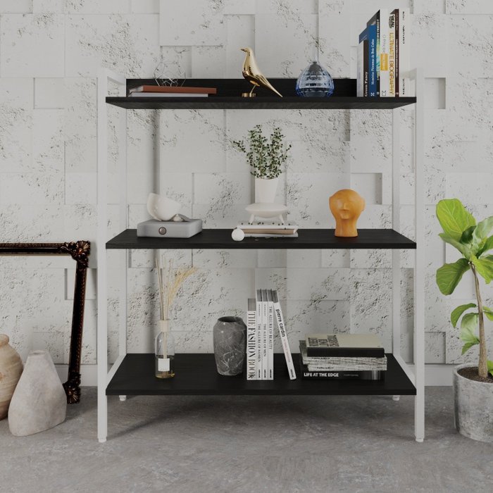 Estante para Livros Industrial 3 Prateleiras 104cmx80cm Active Yescasa Preto Ônix/Branco Chess