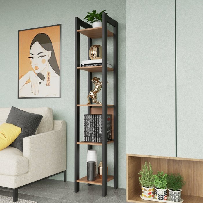 Estante para Livros Multiuso 1,85x0,35m Haia Yescasa Amêndoa/Preto
