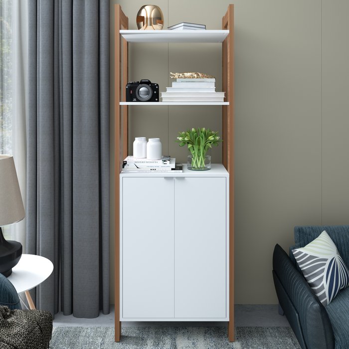 Estante para Livros Multiuso 2 Portas Embaixo 1,85x65m Haia Yescasa Amêndoa/Branco