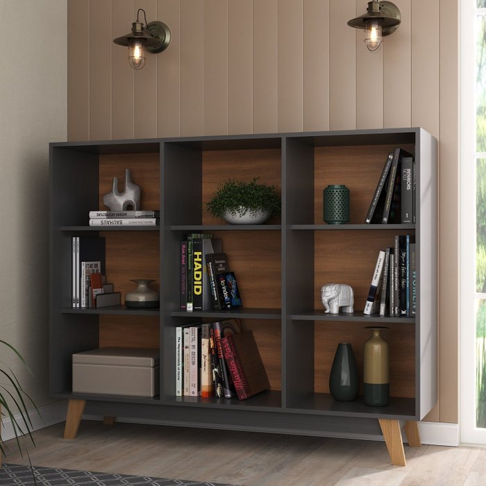 Estante para Livros Nairóbi 6 Prateleiras Espresso Móveis Grafite/Nogal