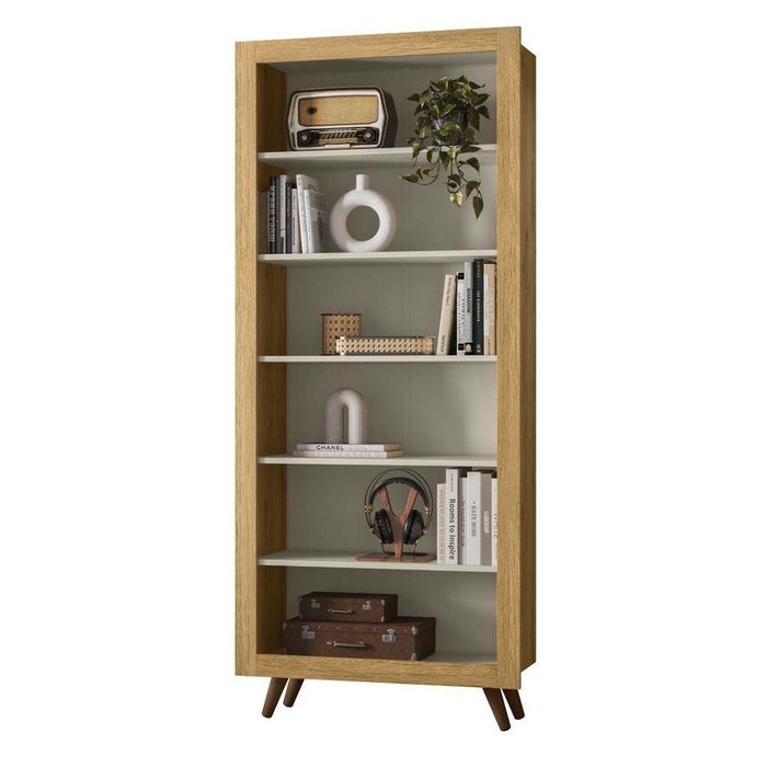 Estante para Livros Retrô com 6 Prateleiras Cor Freijó e Off White - Qmovi Blush