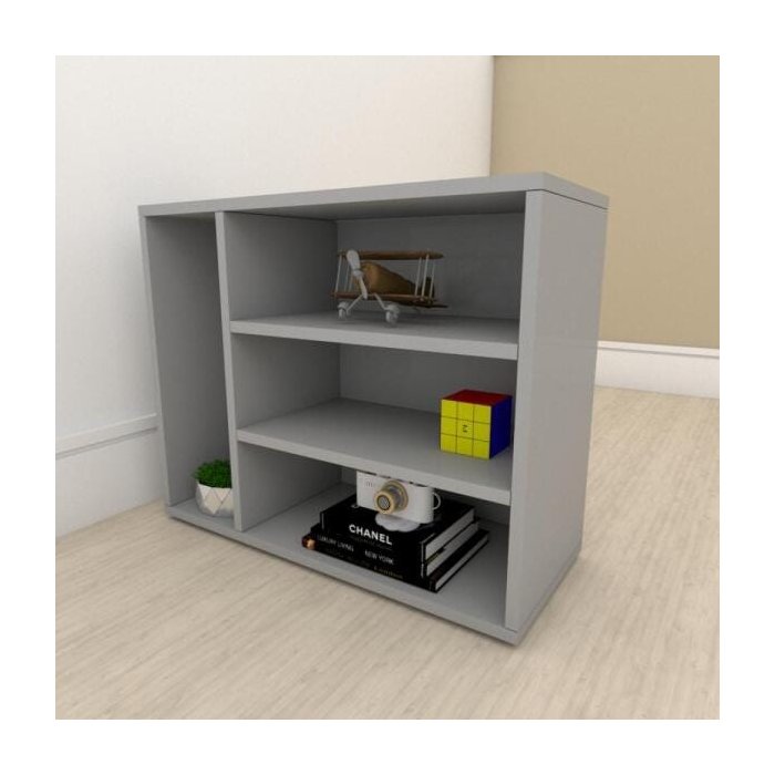 Estante para livros slim com 3 niveis em mdf Cinza Preto