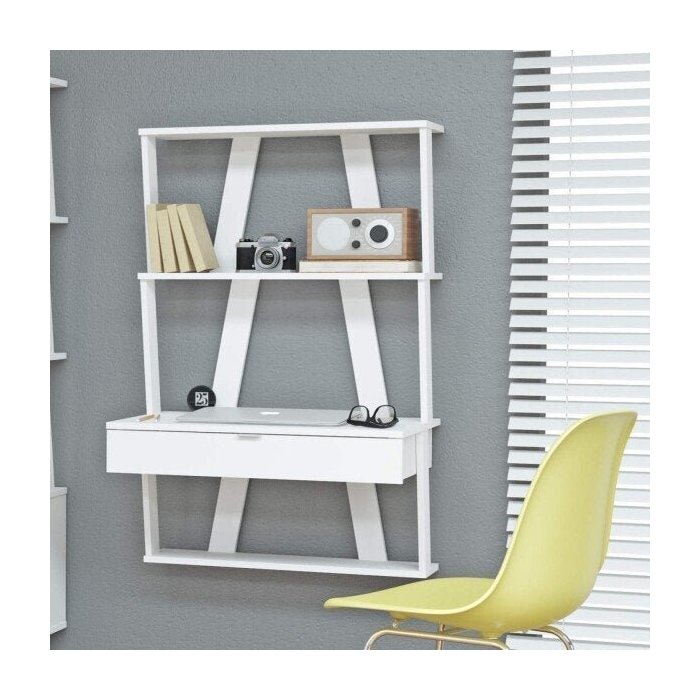 Estante para Livros Suspensa 3 Prateleiras 1 Gaveta Z Tecno Mobili Branco