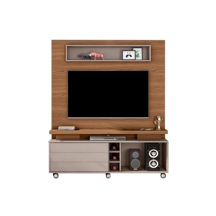Estante para Sala Quebec TV até 60 Polegadas c/ 1 Porta de Correr e 6 Nichos Carvalho/Griz - DJ Móve carvalho/griz