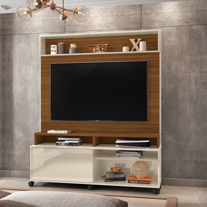 Estante para TV até 60 Polegadas 1 Porta Home Cine Belaflex Freijó/Off White