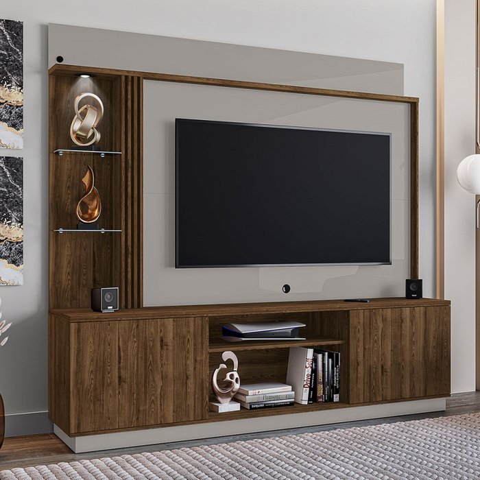 Estante para Tv até 65 Polegadas Atlanta 2 Portas Ipê/off-white - Móveis Bechara