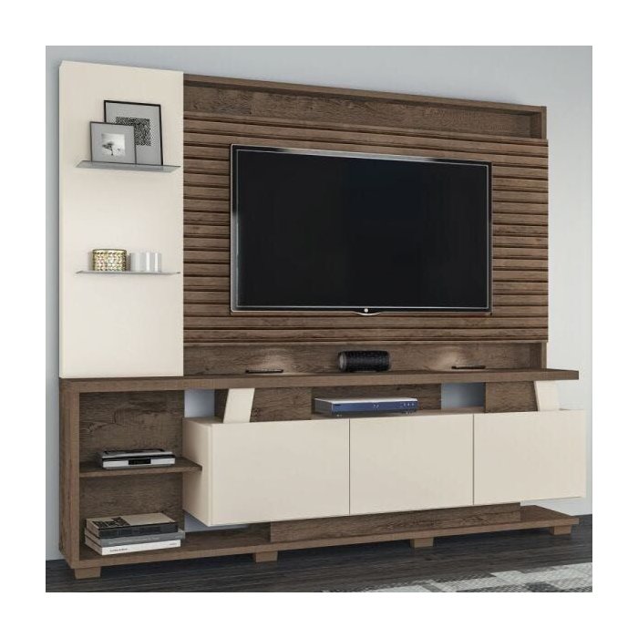 Estante para Tv até 65 Polegadas Dallas 3 Portas Flex Natura Off White/3d Mocaccino Rústico - Atuall