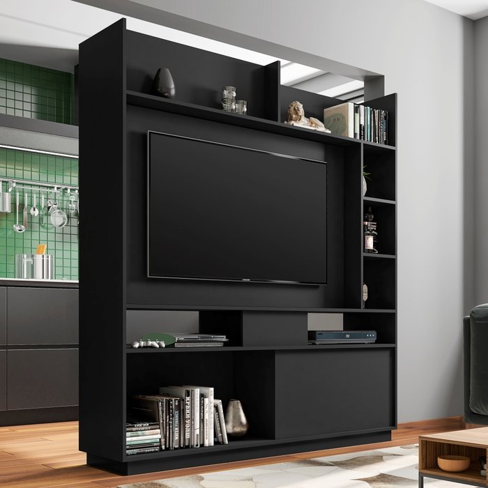 Estante para TV Francis Preto com Painél Giratório em 360 graus