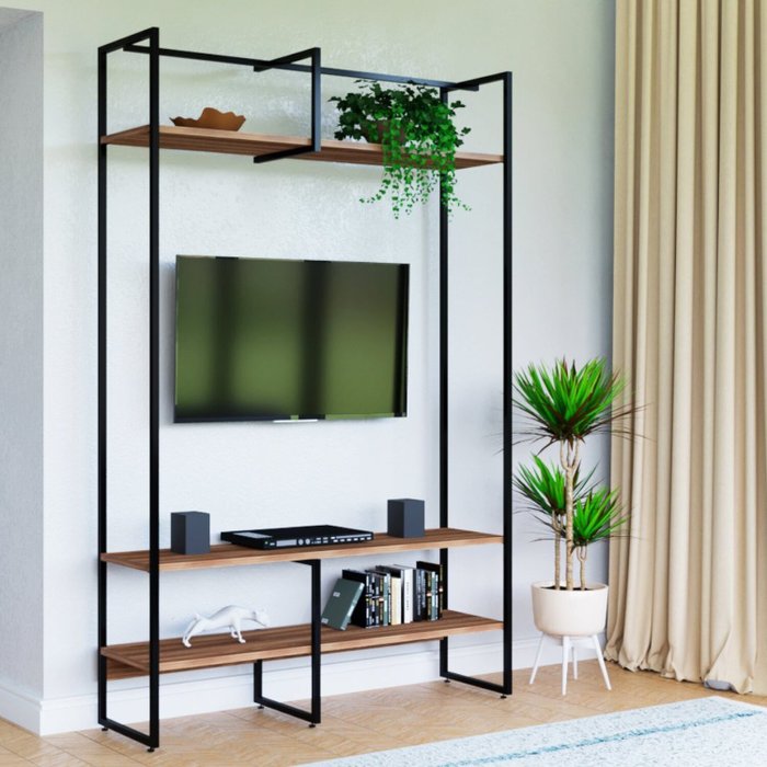 Estante para Tv Industrial de Parede Urban com 130cm Freijó/Preto
