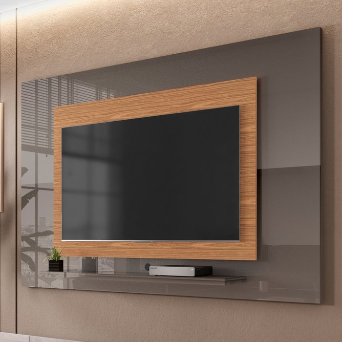 Além de ser suspenso na parede lhe dando mais espaço, o Painel possui 1 Prateleira para seus aparelhos eletrônicos, Espaço de 25mm para fiação para manter o cabeamento de seus eletrônicos organizados e bordas em Acabamento em Soft-PU.