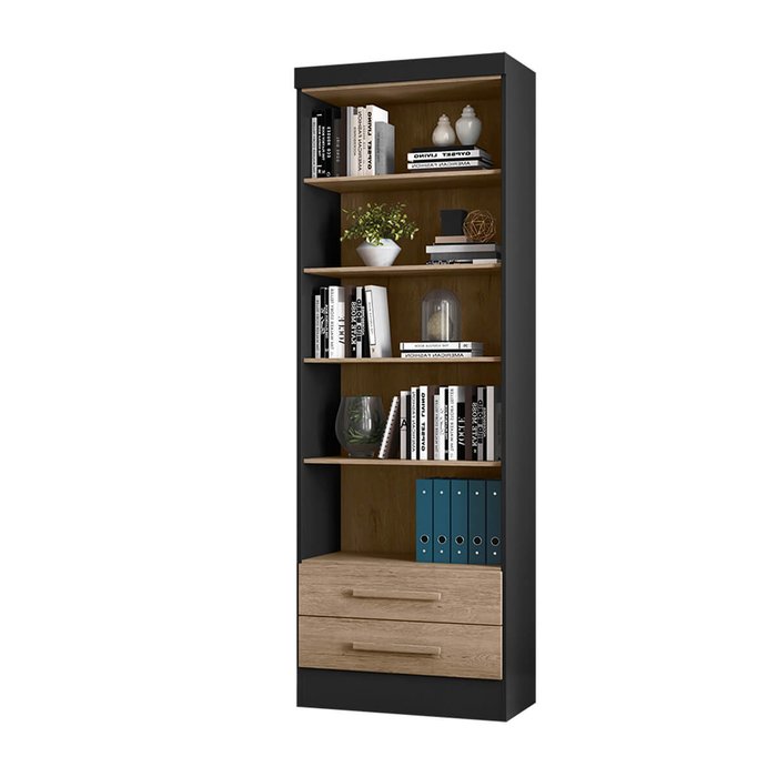 Estante Prateleira de Livro 2 Gavetas Multiuso 183 Altura Morrison - ÉdeCasaMóveis 0009-90-Preto-Carvalho Toq Rustico