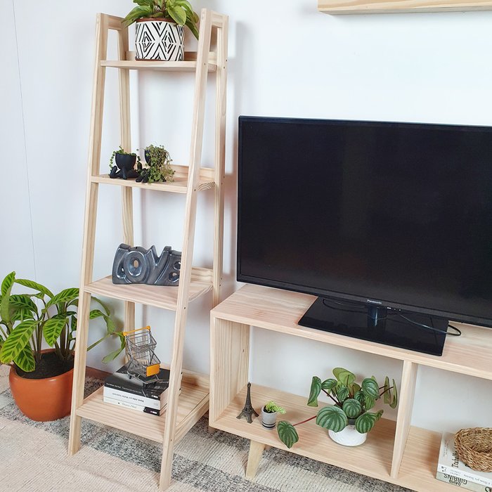 Estante Tipo Escada Vitória 4 Prat 150AX40LX38P em Madeira de Pinus Cubomob natural