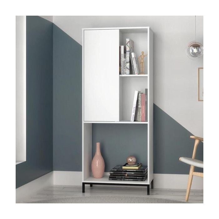 Estante Tubular com 1 Porta e 3 Nichos BRV - Branco/Preto