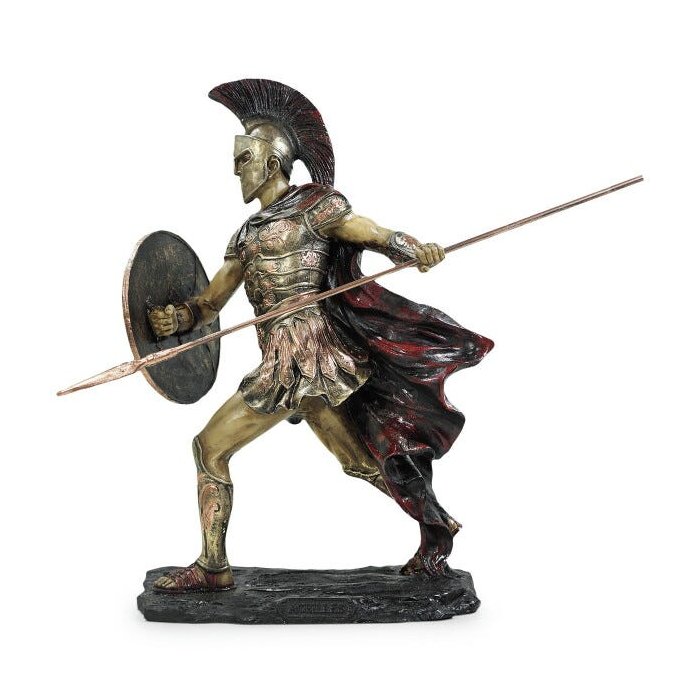 Estátua Aquiles, fabricado em resina de alta qualidade, com pintura super detalhada. COR: COLORIDO * Disponível também nas cores OURO ENVELHECIDO, PRATA ENVELHECIDO, PRETO FOSCO e BRONZE ENVELHECIDO MEDIDAS: 28 x 18 x 10 cm (Altura x Comprimento x Largura) CURIOSIDADE: Aquiles (mitologia grega), foi um herói da Grécia, um dos participantes da Guerra de Troia e o personagem principal e maior guerreiro da Ilíada, de Homero. Aquiles tem a característica de ser melhor entre eles. REF.: RES6