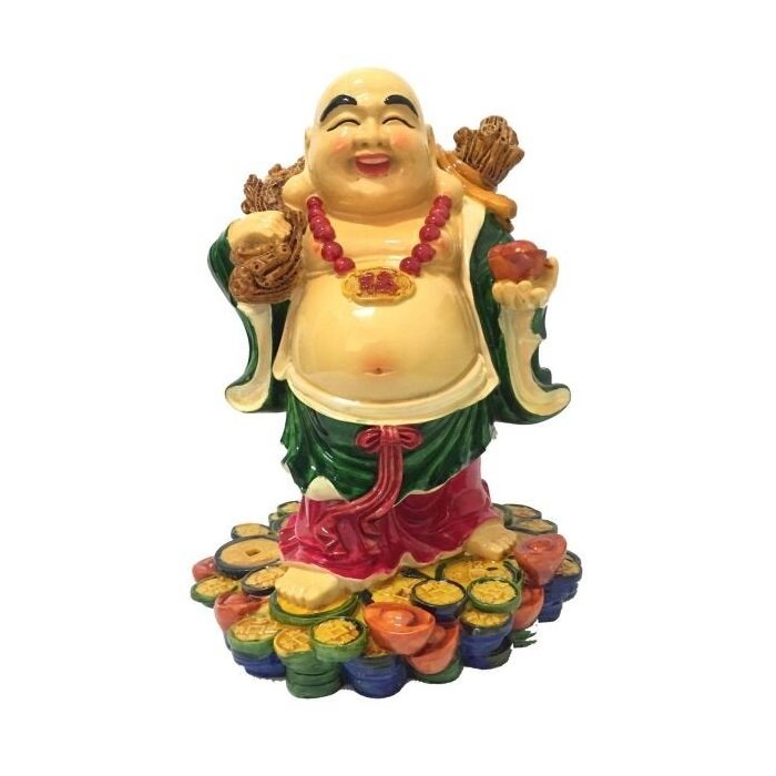 Buda sorridente: Segundo Feng Shui, ajuda a iluminar as ideias e atrai prosperidade. Dica: Para conseguir pagar as suas dívidas, você deve colocar a imagem de Buda de costas para a porta de entrada de seu lar, com algumas moedas ao redor. Quando conseguir se livrar das contas, desvire a imagem.O Buda da abundância também é conhecido como Ho tei ou Bu Dai, que significa amoroso, amistoso, simpático.
