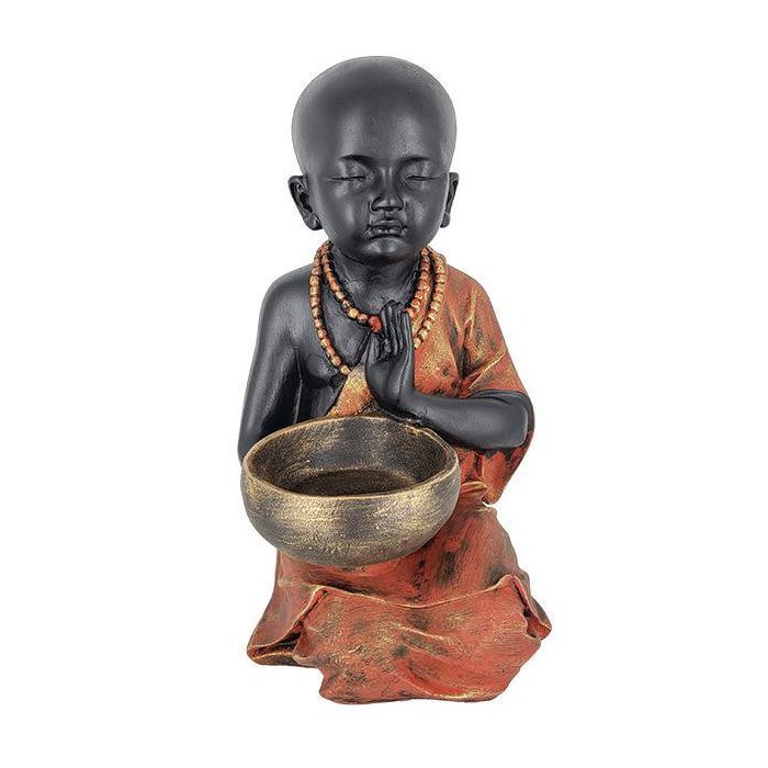 Estátua Buda Menino Com Castiçal Grande 32Cm 05028 preto, dourado e laranja