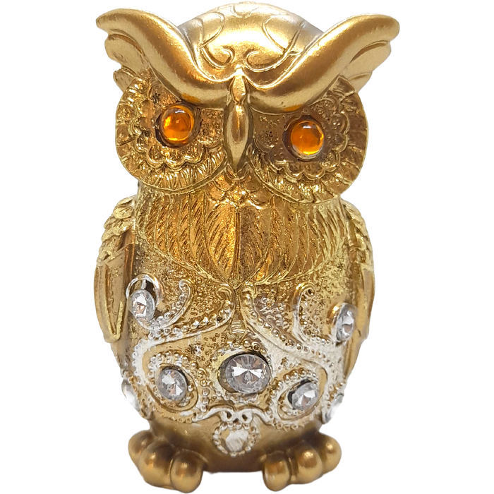Estátua Coruja da Sabedoria Proteção Dourada Decoração Luxo