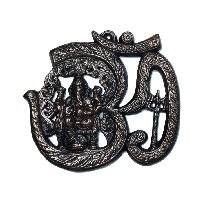 Estátua de Ganesha OM Metal Cobre 20 Cm Loja da Índia Ganesha na Mandala do OM, Proteção e quebra de