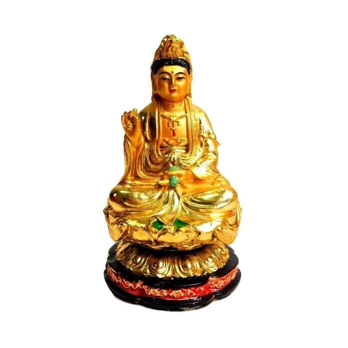Estátua Deusa Kuan Yin Dourada Resina 11Cm