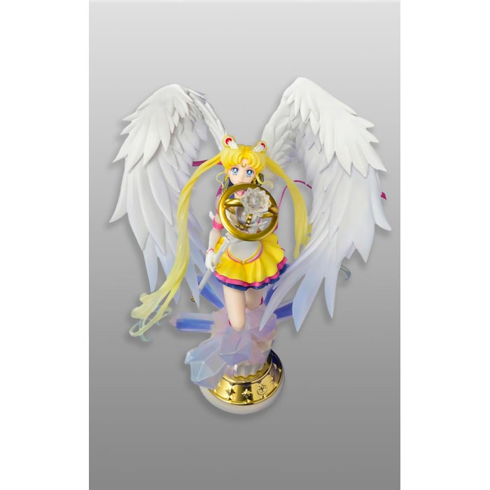 Serenity foi a princesa do Reino da Lua durante o Milênio de Prata. Eventualmente, depois da infeliz e repentina destruição do Reino, ela foi enviada para o futuro na Terra e reencarnou como uma menina de origem japonesa chamada Usagi Tsukino, ou Serena Tsukino no Brasil, mais conhecida como Sailor Moon ou Navegante da Lua, é a personagem principal do anime e mangá Sailor Moon. Sailor Moon Eternal é um filme em duas partes da franquia Sailor Moon Crystal que adapta o arco Dream do mangá. Começa imediatamente após os eventos da Crystal Season III, e é seguido por Sailor Moon Cosmos. Figuarts Zero Chouette tem o orgulho de anunciar Eternal Sailor Moon Darkness Call to Light and Light! Através do uso de esculturas suaves, mas detalhadas, materiais translúcidos e cromagem, Figuarts Zero Chouette dá vida a Eternal Sailor Moon, com toda a sua efemeridade e coragem.