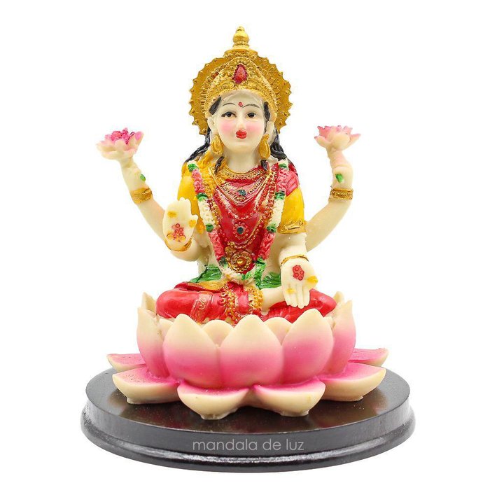 Produto importado - Decoração - Estátua - Estatueta - Lakshimi - Deusa - Prosperidade - RiquezaEmitimos Nota Fiscal Eletrônica para todos os Produtos. Peça confeccionada em Resina de Alta Qualidade, muito resistente e ótimo acabamento. Pintura artesanal: por ser uma peça pintada à mão, pode haver uma pequena variação na tonalidade da foto. Altura: 13,5cmLargura: 12cmProfundidade: 12cmMaterial: ResinaPeso médio: 220 gramas Lakshmi é a energia feminina. Deusa da prosperidade e da abundância. Esposa do deus Vishnu, o sustentador do universo na religião hindu. Lakshmi, Laxmi ou Lacximi é uma deusa hindu. A personificação da prosperidade, beleza, fartura, generosidadee principalmente da fortuna. Pode ser vista sentada sobre uma flor de lótus, ou segurando flores de lótus nas mãos, e um cântaro que jorra moedas de ouro. Geralmente, atribui-se a Lakshmi o símbolo da suástica, que representa vitória e sucesso. Mãe Lakshmi é consultada pela população hindu que busca algum tipo de riqueza. Ela é um símbolo da potência feminina.Mantra: Om Shreem Mahalakshmiyei Namaha