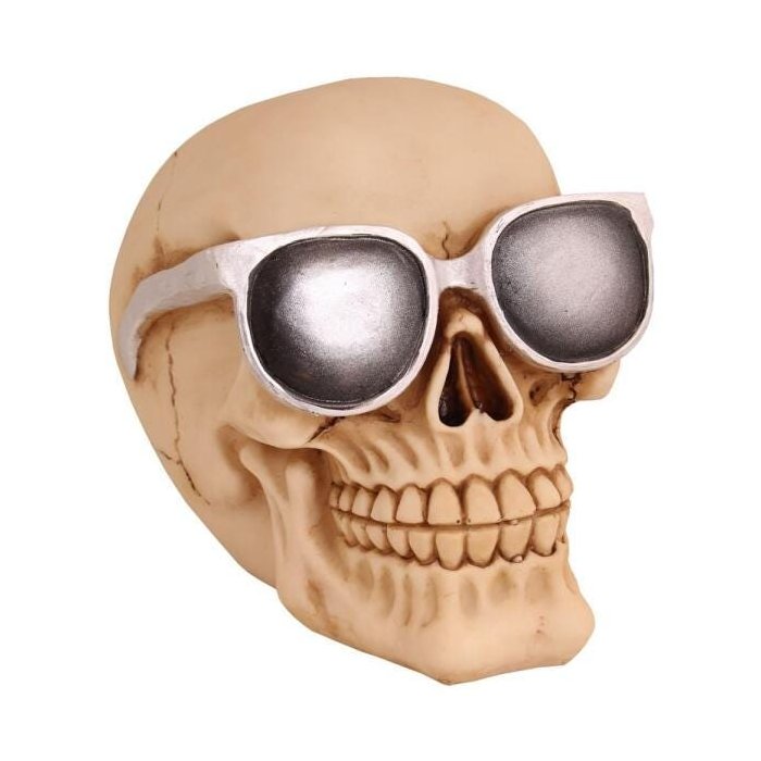 Estatueta Caveira com Óculos de Sol em Resina 12 cm