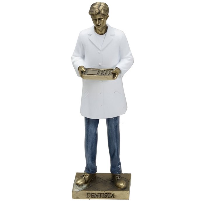 Estatueta Decoração Odontólogo Dentista Enfeite Resina 25cm Branco; Bronze; Azul