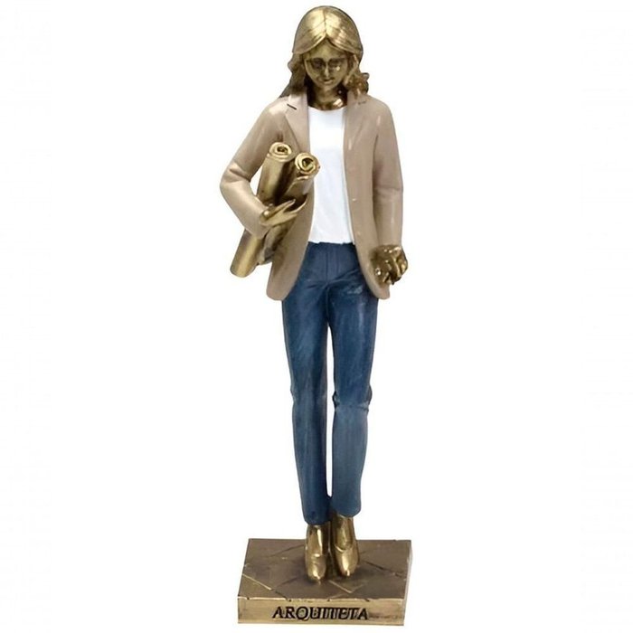 Estatueta Profissão Arquiteta Escultura Resina Enfeite 23cm Branco; Bege; Bronze; Azul