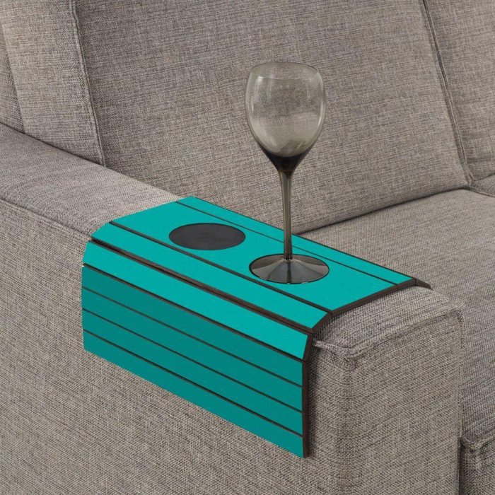 A Esteira Porta Copos para o braço do sofá é um acessório moderno e prático para seu dia a dia, pois permite que você tenha seu copo de bebida por perto enquanto descansa e assiste TV. Ótimo para apoiar pratos e pequenos objetos com bastante estabilidade.