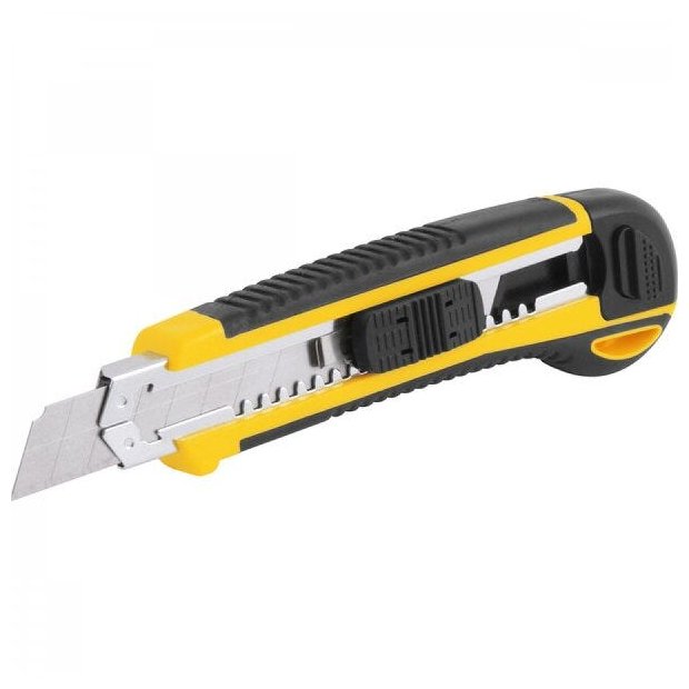Material do corpo do estilete: Plástico revestido com borracha termoplástica / Tipo da lâmina: Reta segmentada / Comprimento total do estilete: 6.1/2" - 165 mm / Largura da lâmina: 18,0 mm