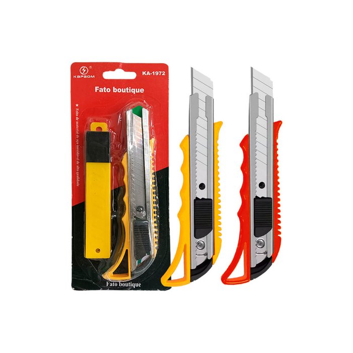 O Estilete Metal com Refil combina durabilidade e conforto para uso profissional e doméstico. Com um corpo de metal resistente e um acabamento ergonômico em plástico, proporciona uma aderência confortável durante o manuseio. Suas lâminas de 18mm em aço inoxidável garantem precisão nos cortes. Além disso, possui uma trava de segurança para proteção adicional: basta pressionar para deslizar a lâmina, garantindo segurança durante o armazenamento e o transporte.