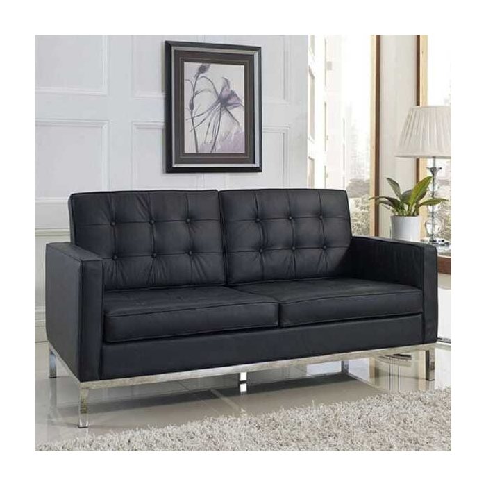 Estofado Fk 2 Lugares Couro Natural Cn 10 Preto