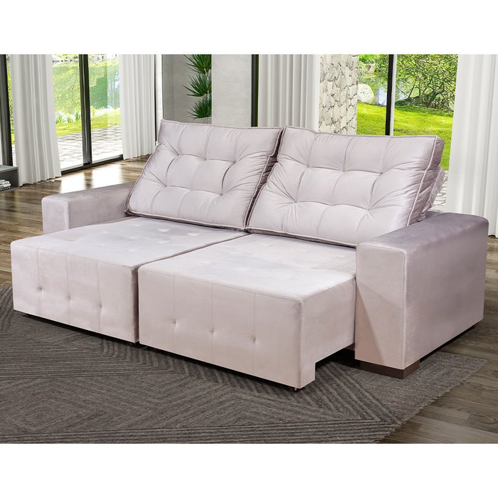 Estofado Roma retrátil e reclinável, feito com madeira 100% de eucalipto, com seus assentos em molas ensacadas proporcionando assim um melhor conforto e durabilidade. Pillow 10cm de espuma de alta intensidade.
