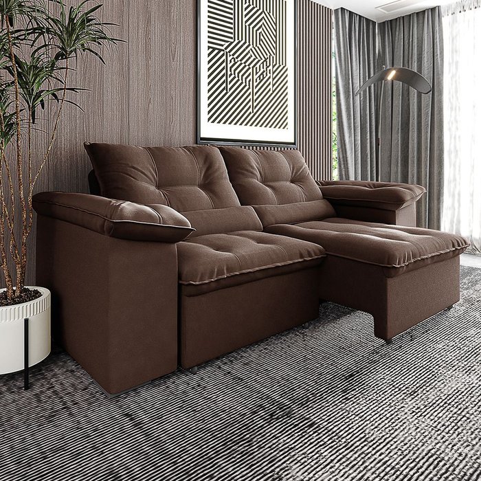 Estofado Sofá Barcelona 2.30 Metros Retrátil e Reclinável - Marrom