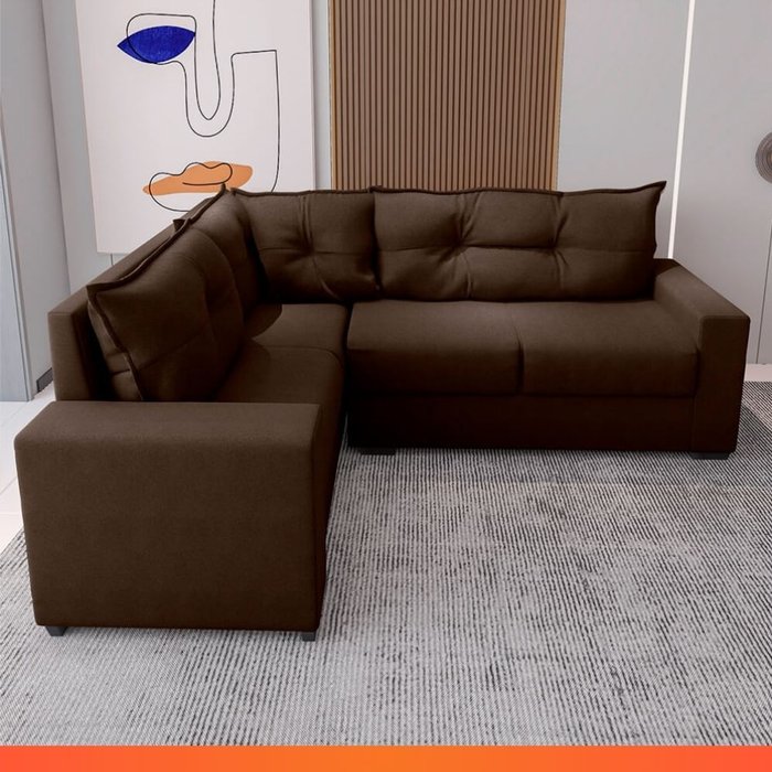 Estofado Sofá de Canto 5 Lugares Veneza com Espuma D-26 e Estrutura de Eucalipto Marrom