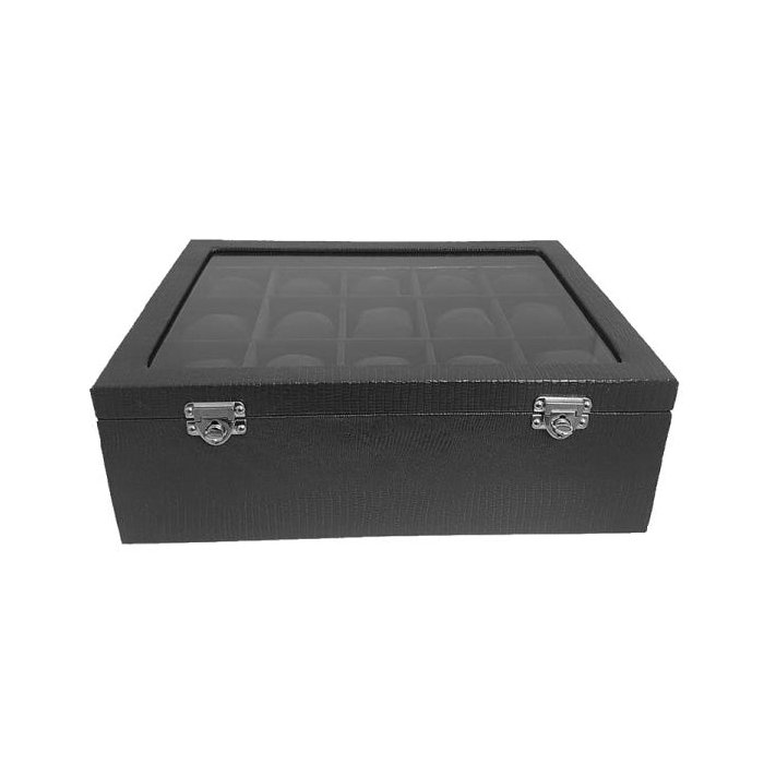 Estojo para 30 relógios com Tampa com Vidro - Preto