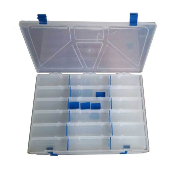 A GPF desenvolveu o Estojo Box. Com um total de 18 divisões com divisórias removíveis e móveis, poderá acondicionar suas iscas artificiais de acordo com o tamanho, aproveitando todo o espaço interno do Estojo. Nunca foi tão fácil e rápido de organizar seus snaps, giradores e outros acessórios de forma pratica e eficaz. Estojo de alta qualidade e sofisticação conta com paredes mais grossas, proporcionando durabilidade e segurança. As divisórias poderão ser manipuladas nas seguintes medidas: 6 cm, 8 cm, 12 cm, 14 cm, 20 cm, todos com 4 cm de largura e com 2,4 cm (24mm) de altura