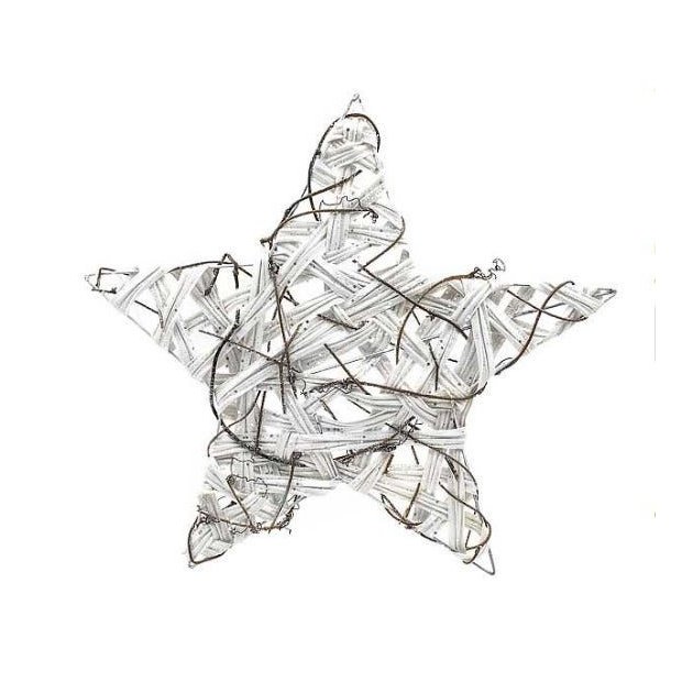 ESTRELA ARAMADA 40X2CM PLANA BRANCA C/RAMOS EM RATAN C/GLITTER OPP