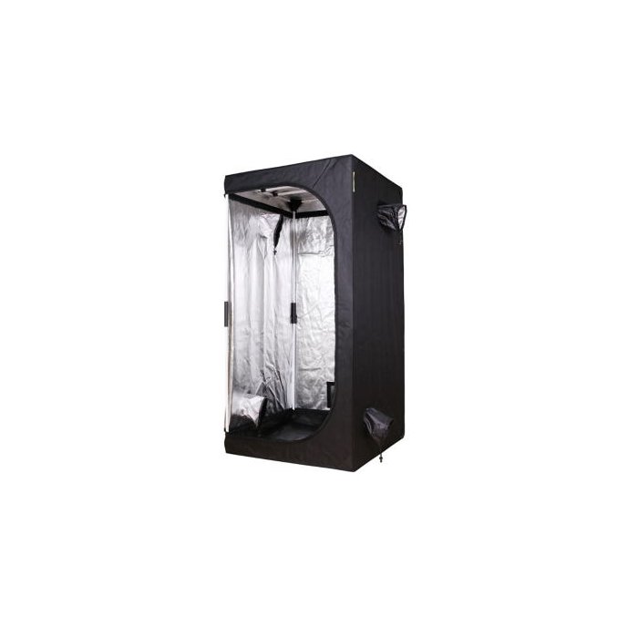 Construída em Mylar com 97% de refletividade pela empresa suíça Garden HighPro nas dimensões 60x60x160 cm pesando 6,8 quilos. O Mylar, alem de resistente e lavável, aumenta a radiação fotossintética (PAR), multiplicando a eficiência energética da sua fonte luminosa. Da cabine de cultivo não vasa nenhuma luz, garantindo black-out total para plantas que necessitam de período escuro para florescimento. Alem disto a estufa mantém seu ambiente de cultivo limpo e organizado, evitando pragas indesejáveis e aumentando sua produtividade.